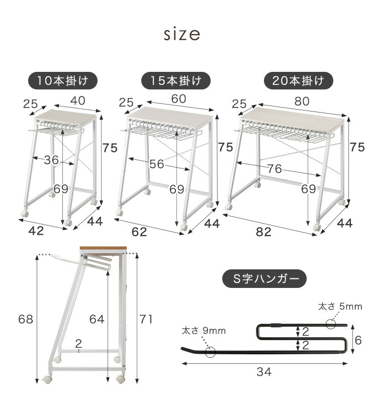 10本掛け:幅42×奥行44×高さ75cm |