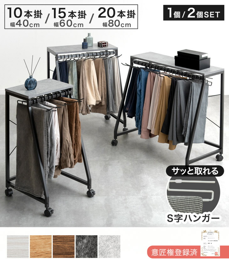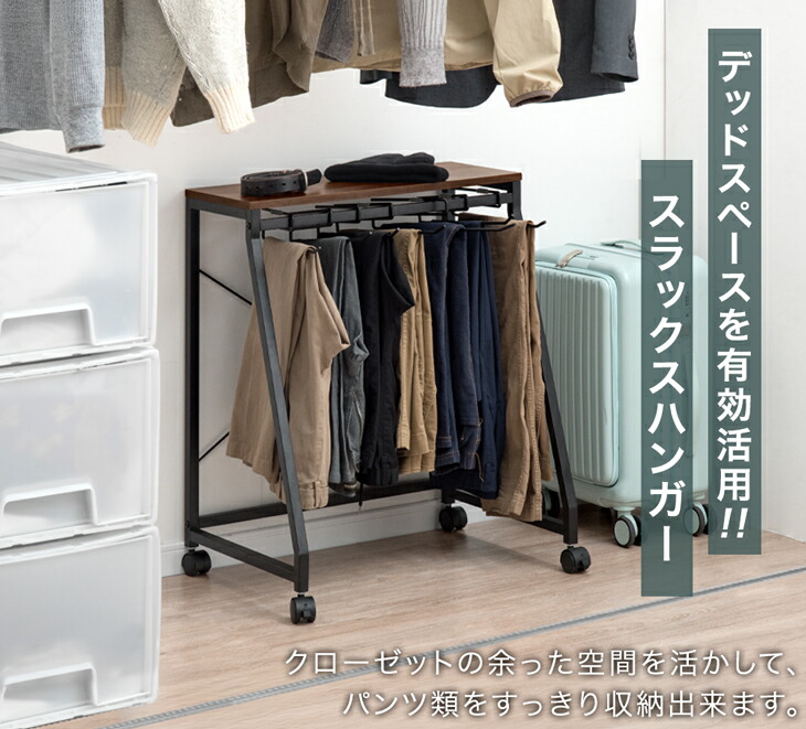 天板付き スラックスハンガー 滑りにくい S字 ハンガー 10本 15本 20本掛け キャスター付 コンパクト スリム パンツラック ズボンハンガー パンツハンガー 衣類 収納 スラックスハンガーラック 天板 スラックス パンツ