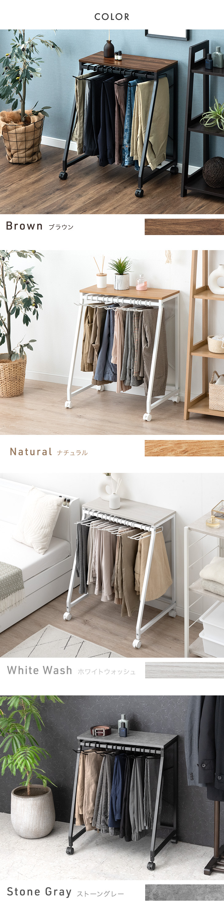 | カラー | ブラウン、ナチュラル、ホワイトウォッシュ、ストーングレー、ストーンホワイト、ストーンブラック | |