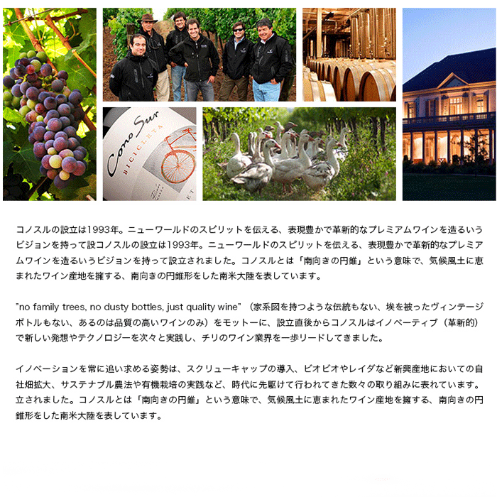 | 商品情報 | 数十万円クラスのワインのテイスティングも行うような、卓越した舌を持つワインソムリエ達が大絶賛するほどの高品質なワイン『コノスル』。ヴァラエタルシリーズは、ワイン入門者からプロまで、安心して薦められるほどの素晴らしい味わいで、ラインナップどれをとっても充分すぎる飲み応えのワインですが、その中でも、特にご自身に合った「お気に入りの一本」を見つけて頂けるよう、お客様のお好きな組み合わせでセットに出来るようにした、カスタムオーダー式のセットです。色々、試してみるのも、好きなブドウ品種だけを選ぶのも、お客様の自由!安くて美味しいコノスル。是非、お試し下さい♪ |