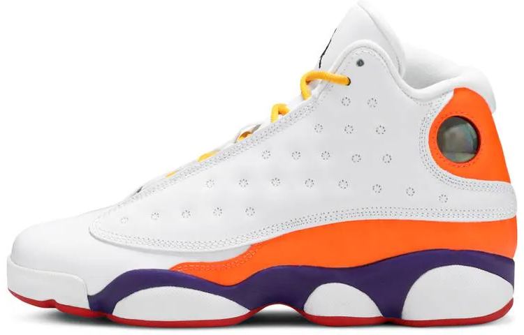 Brand閳ユ獨 habit of using unorthodox color schemes on grade school exclusives is illustrated by the Air 13 Retro GS 'Playground.' The retro mid-top features a white leather upper with mismatched detailing . highlighted by contrasting green and yellow accents on the left shoe and a combination of orange and purple on the right shoe. Common branding elements include a Jumpman on the tongue and a holographic 閳ユat eye閳?on the lateral heel.