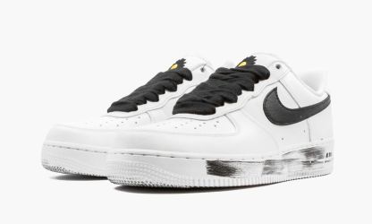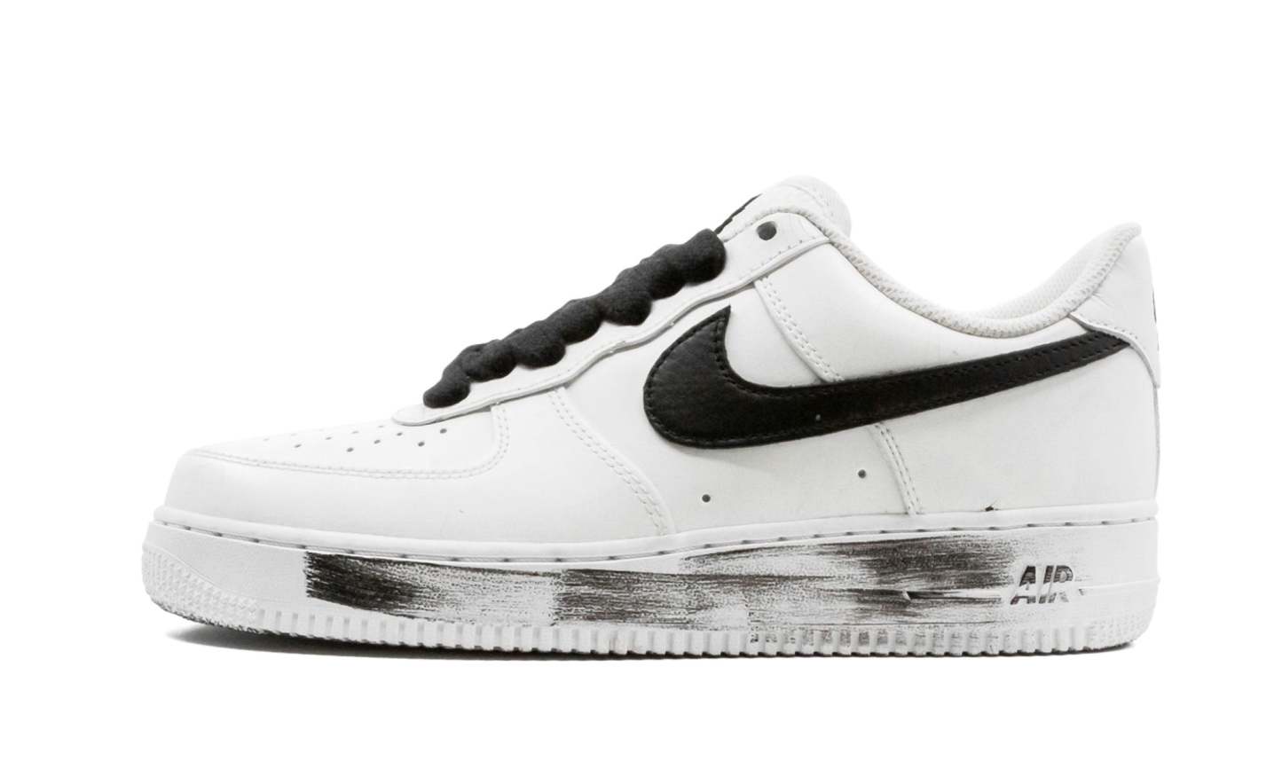 x 1 Low “White” is the follow-up colorway to the South Korean pop artist’s collaboration with on the iconic low-top silhouette. Released by in Fall 2020, the white “Para Noise” colorway is the second 1 created under Peaceminusone fashion label featuring a tear-away design. A cut of white-painted tumbled leather comprises the upper of the shoe, including the perforated toe, mid-panel, and heel. A contrasting black tumbled leather Swoosh appears on either side. Thick black shoe laces and an embroidered floral motif appear on the white leather tongue. Classic “ Air” branding is stitched onto the back of the shoe. When the white paint is worn away, it reveals the artist’s artwork underneath. The look is pulled together by black paint brush strokes on the white midsole. Release date: November 25, 2020.