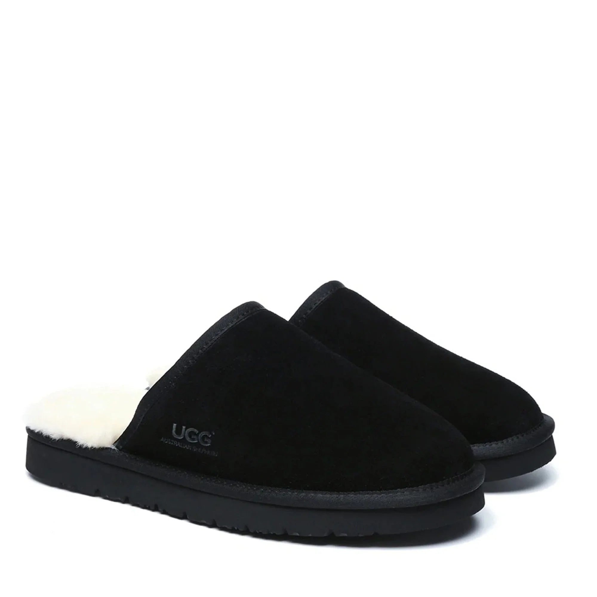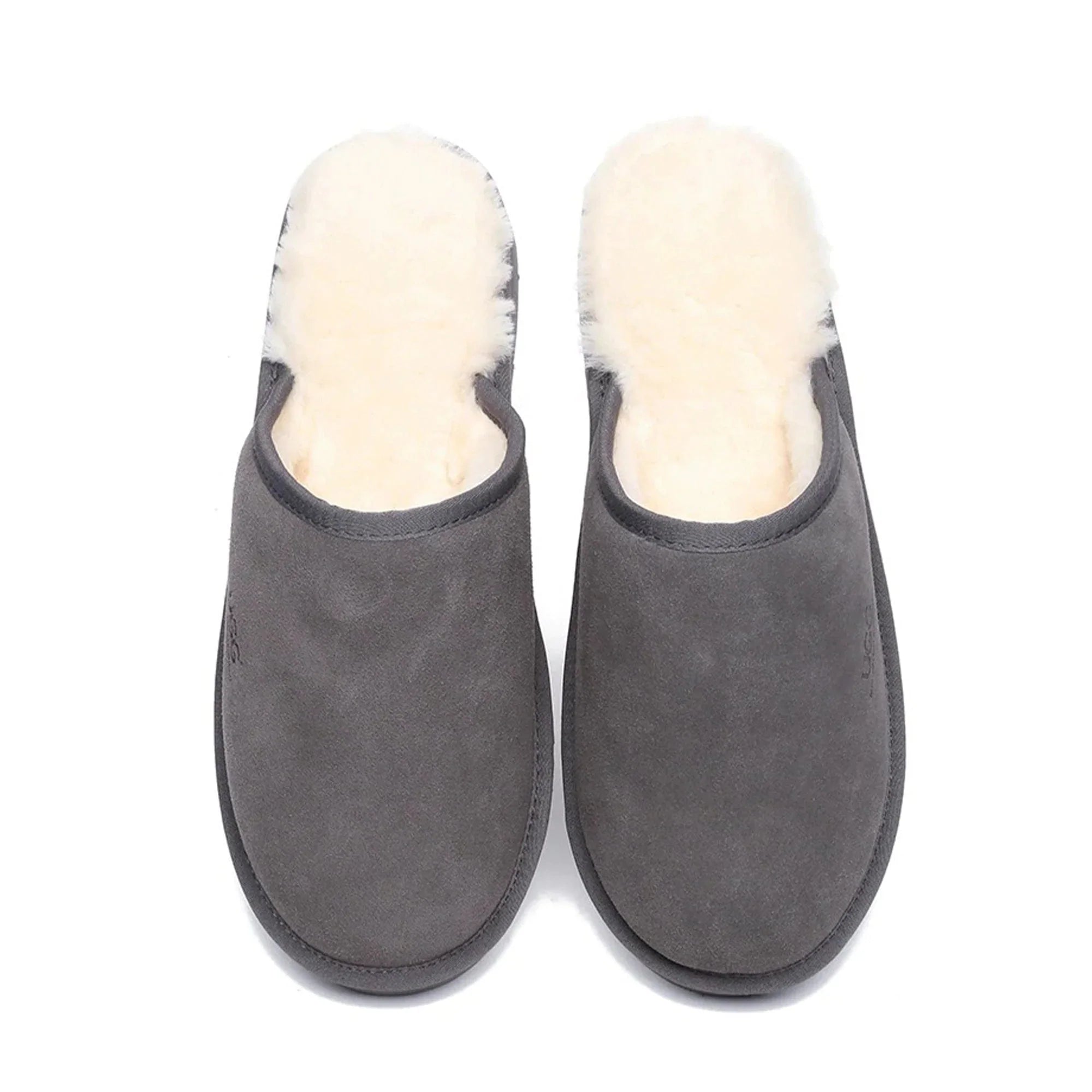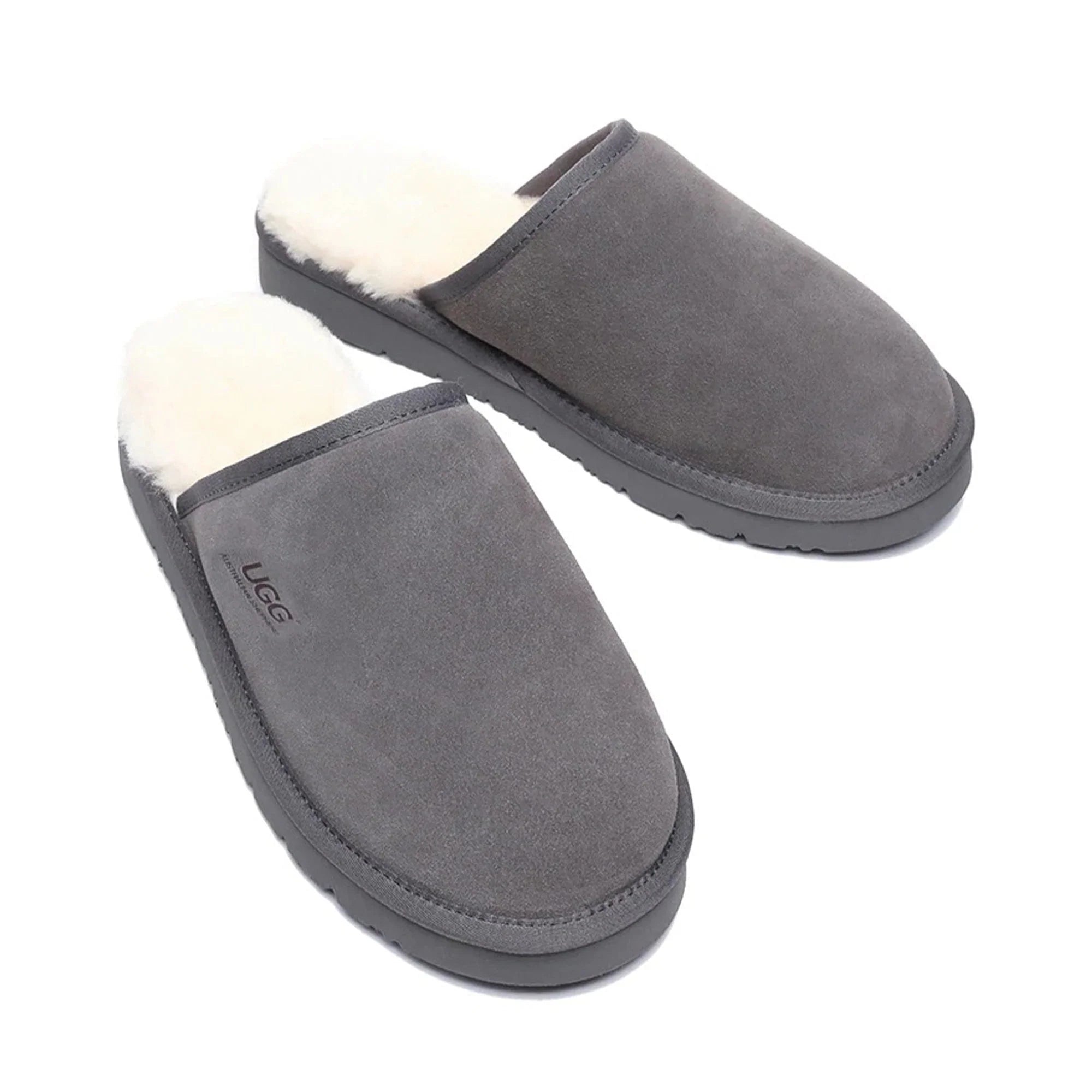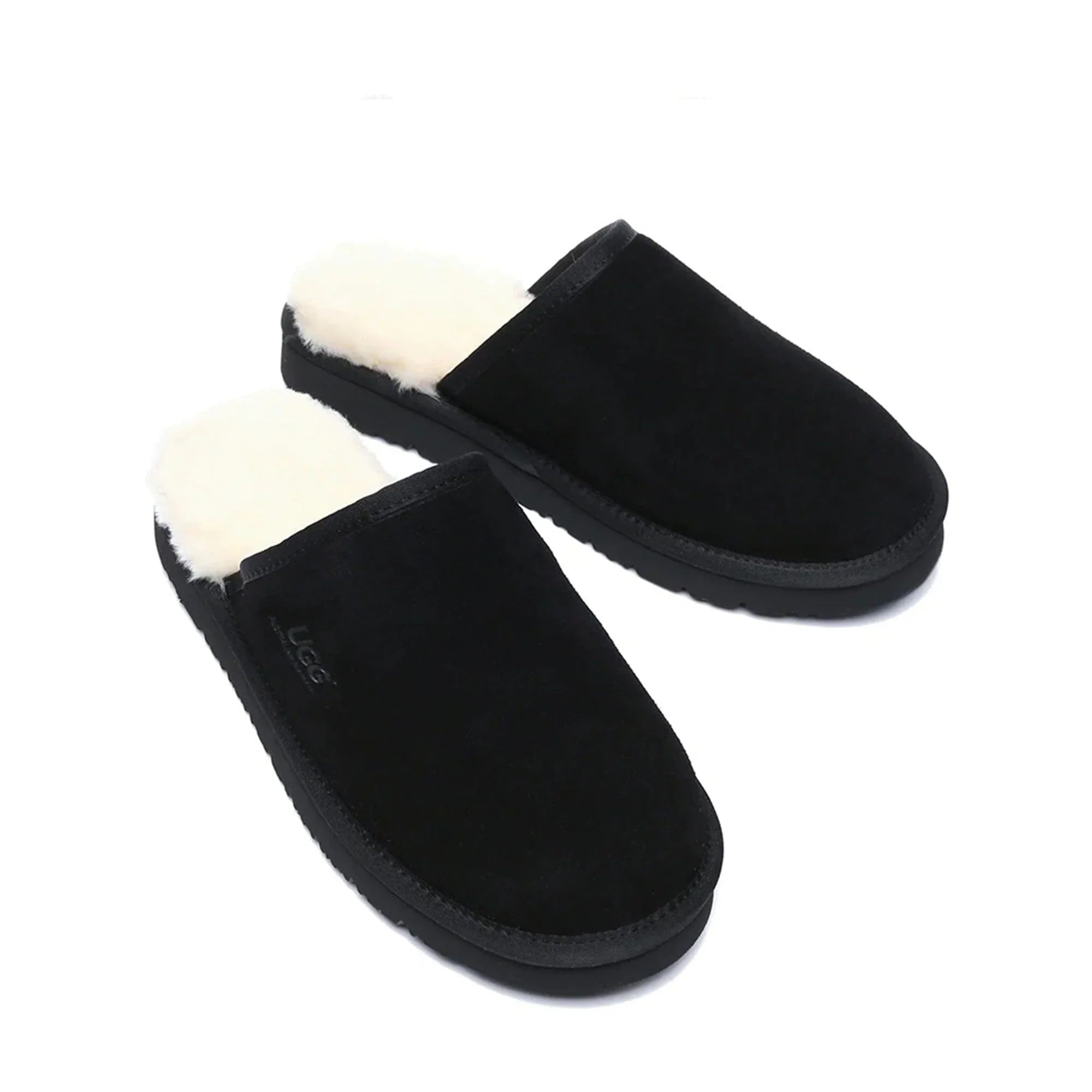 Experience the ultimate in comfort and style with our uqdfgg Zain Slipper, a must-have complement to every man's uqdfgg boots collection. The perfect choice for year-round comfort and style. These slippers are crafted with breathable Premium Sheepskin wool, ensuring your feet stay warm during winter and cool in summer. The cow suede upper is not only smooth but also highly durable, featuring a water-resistant coating to shield against dirt and water.