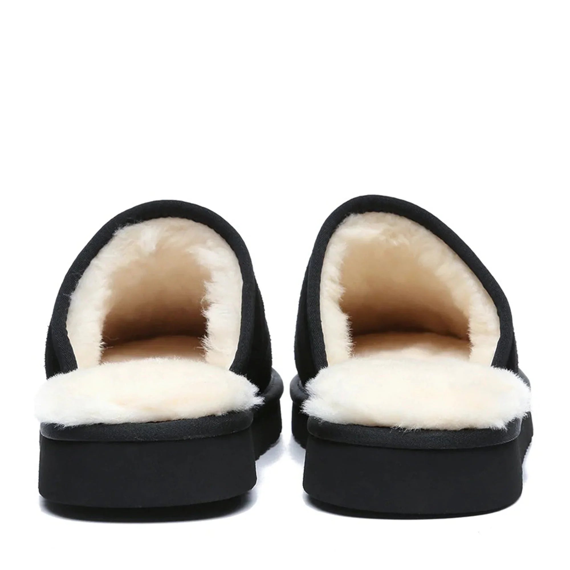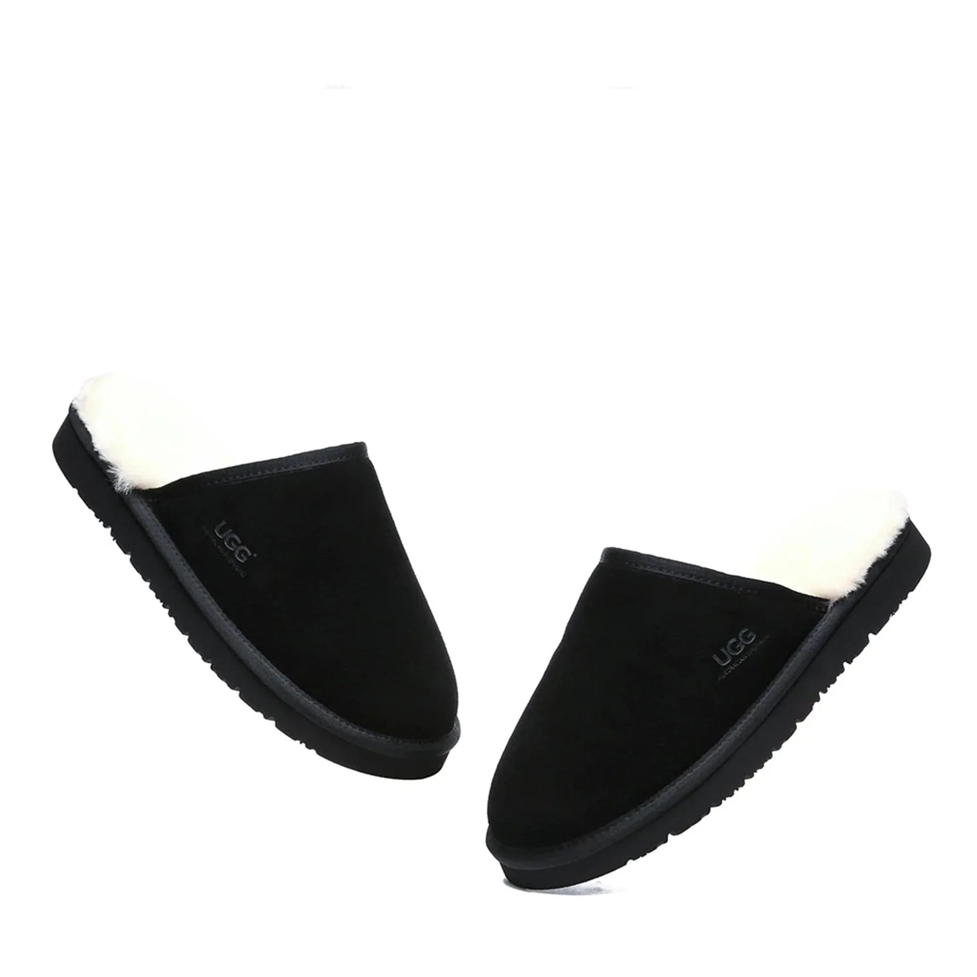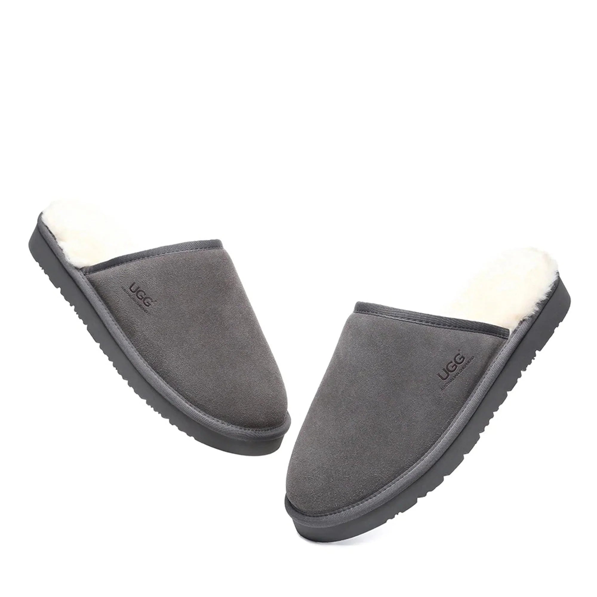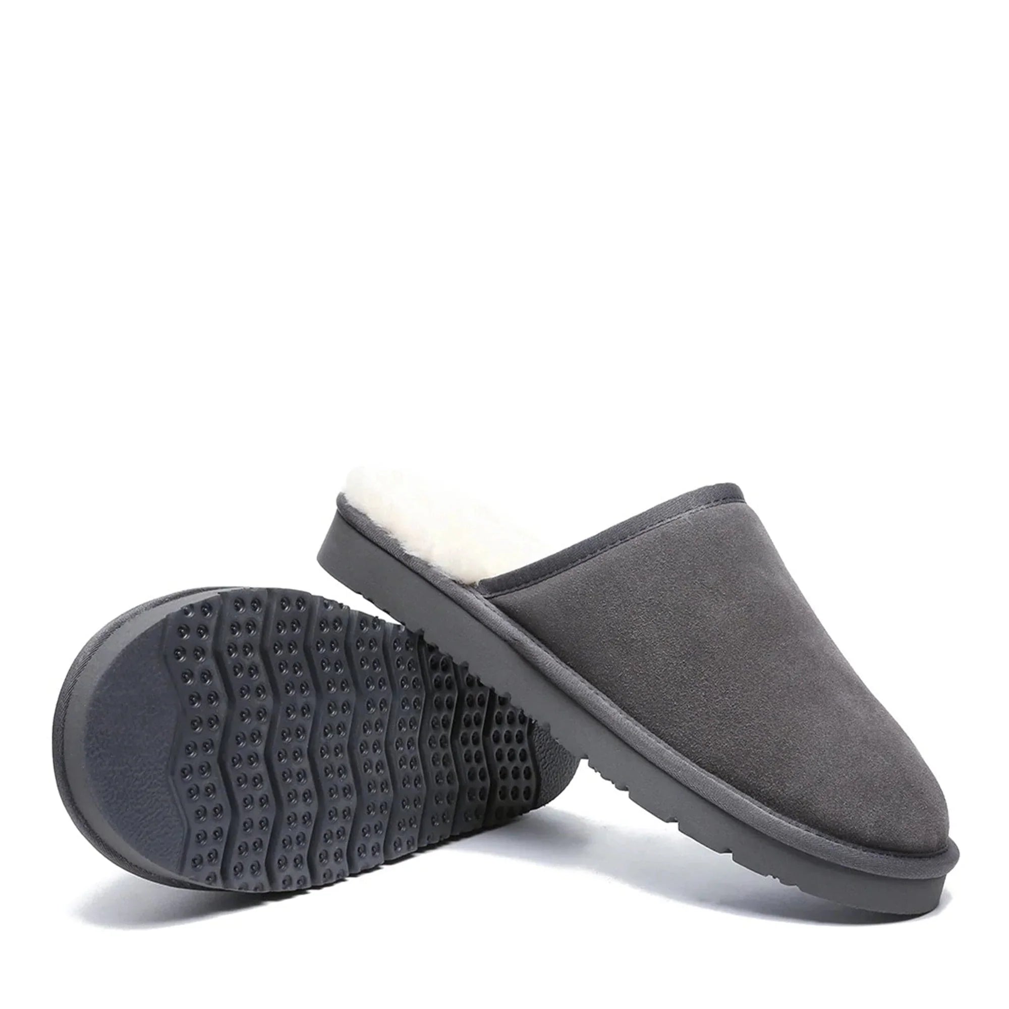Experience the ultimate in comfort and style with our uqdfgg Zain Slipper, a must-have complement to every man's uqdfgg boots collection. The perfect choice for year-round comfort and style. These slippers are crafted with breathable Premium Sheepskin wool, ensuring your feet stay warm during winter and cool in summer. The cow suede upper is not only smooth but also highly durable, featuring a water-resistant coating to shield against dirt and water.