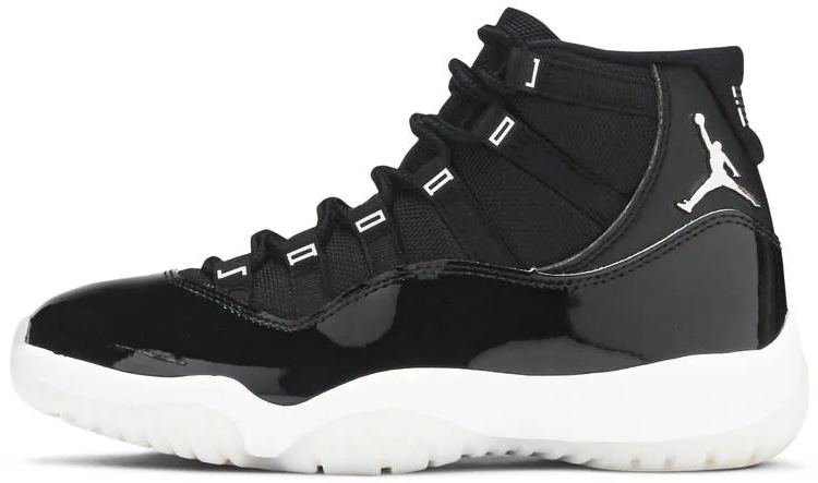 The women's Air 11 閳ユクubilee閳?. also known as the Air 11 '25th Anniversary' . celebrates the classic silhouette閳ユ獨 quarter-century birthday with a monochrome black finish throughout the upper . constructed from a traditional blend of ballistic mesh and patent leather. In keeping with the shoe閳ユ獨 silver anniversary . a 3D metallic Jumpman and matching 閳?3閳?branding decorate the heel . while 閳ユǚ鈧?is spelled out in stylized silver lettering on each of the sneaker閳ユ獨 eyelets. The mid-top rides on a classic white foam midsole . supported by a translucent rubber outsole.
